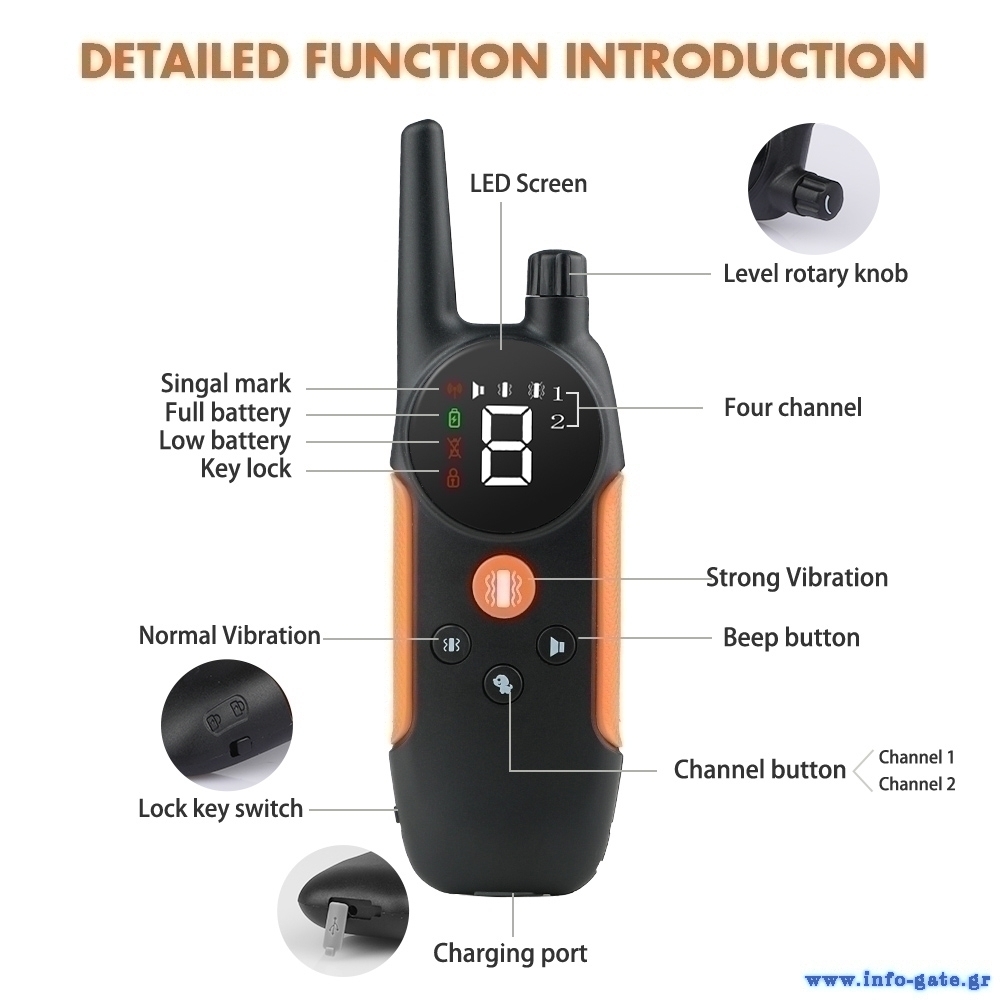 Με 4 λειτουργίες (ήχος, δόνηση, ηλεκτρικός παλμός, LED φωτισμός) και ρυθμιζόμενα επίπεδα λειτουργιών, μπορείτε να προσαρμόσετε τη χρήση του κολάρου ανάλογα με τις ανάγκες σας.