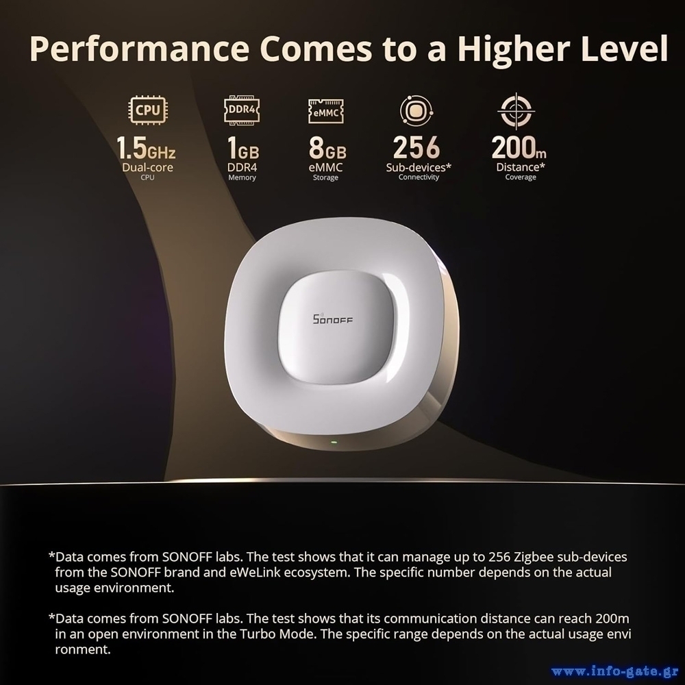 Λειτουργεί ως γέφυρα (hub) που συνδέει τις ZigBee συσκευές σας με το WiFi δίκτυο, επιτρέποντας τον απομακρυσμένο έλεγχο τους και τη δημιουργία έξυπνων σκηνών μέσω smartphone και της εφαρμογής eWeLink.