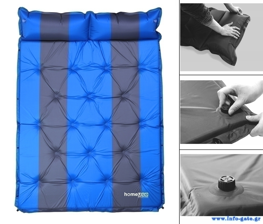 HOME USE αυτοφούσκωτο στρώμα HUH-0238 με μαξιλάρι, διπλό, 192x132x3cm, μπλε/γκρι