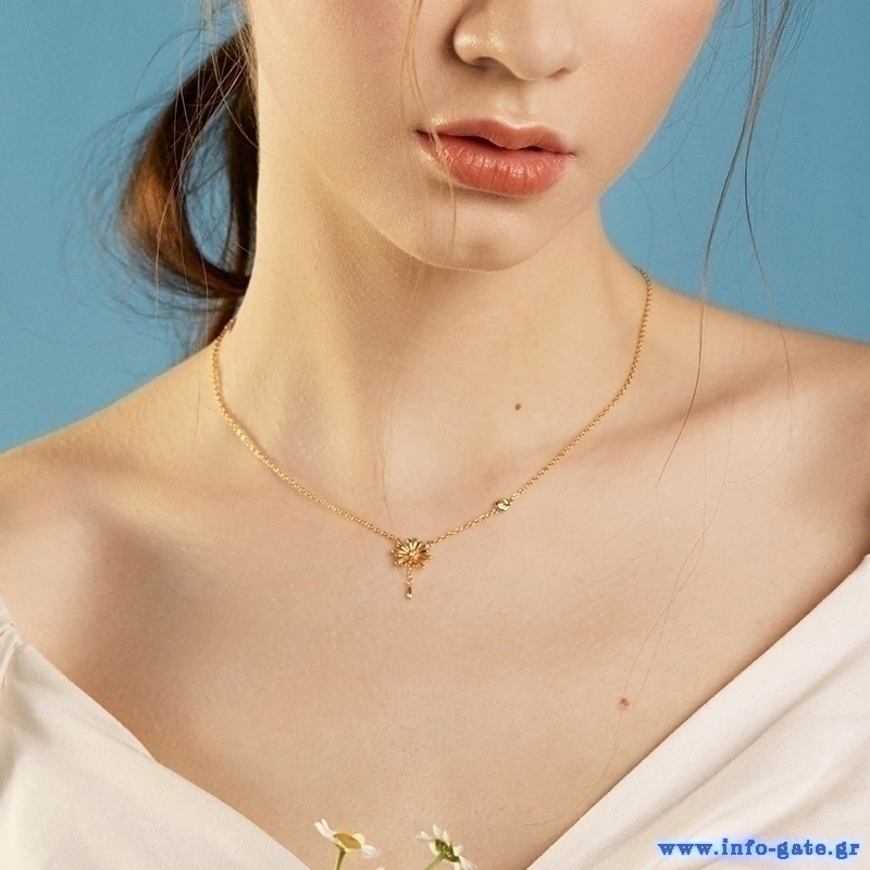 Kομψό κολιέ, με σχήμα λουλουδιού, διακοσμημένο με κυβική ζιρκόνια η οποία προσφέρει μοναδική λάμψη στο κόσμημα.
