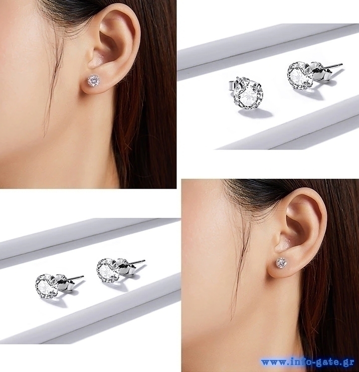 BAMOER σκουλαρίκια καρφωτά BSE166 με κυβική ζιρκόνια, 6mm, ασήμι 925