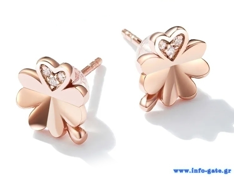 Εντυπωσιακό σκουλαρίκια Bamoer σε σχήμα τετράφυλλο τριφύλλι, κατασκευασμένα από ασήμι 925, σε ροζ χρυσό χρώμα, διακοσμημένα με αστραφτερή κυβική ζιρκόνια η οποία αντανακλά μοναδικά το φως και προσφέρει λάμψη στο κόσμημα.