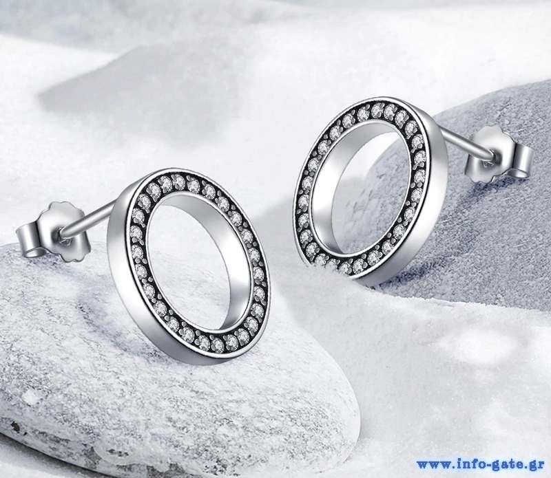 BAMOER σκουλαρίκια καρφωτά PAS437 σε σχέδιο κύκλου, ασήμι 925, ασημί