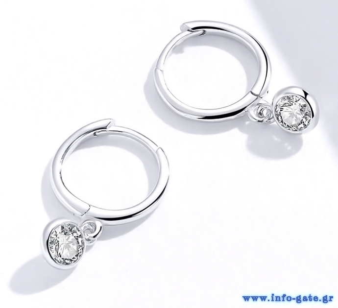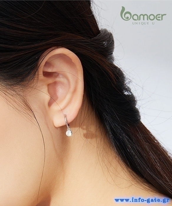 Σκουλαρίκια κρίκος Bamoer κατασκευασμένα από ασήμι 925, επιπλατινωμένα, διακοσμημένα με αστραφτερή κυβική ζιρκόνια, ημιδιαφανούς λευκού χρώματος.