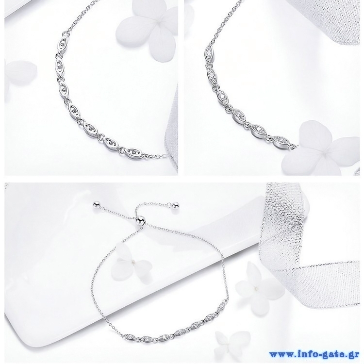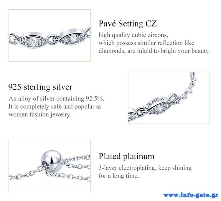 Κατασκευάζεται από ασήμι 925 με επιπλατίνωμα και διαθέτει κρίκους αυξομείωσης ώστε να το ρυθμίσετε στην επιθυμητή θέση.