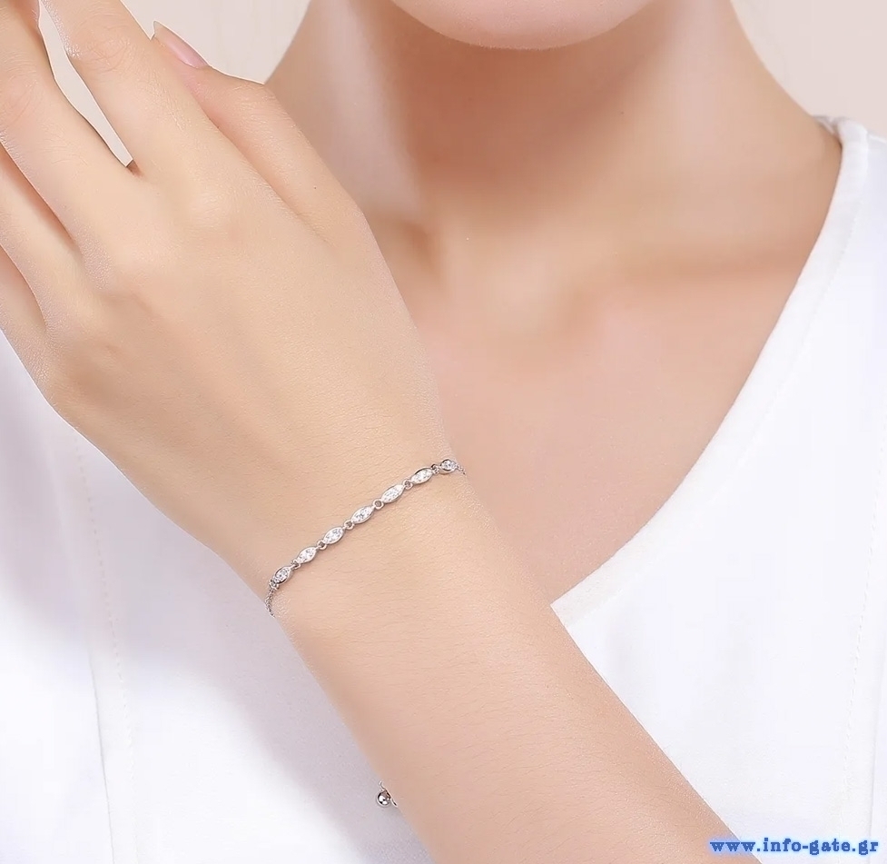 Κομψό βραχιόλι, διακοσμημένο με κυβική ζιρκόνια, λευκού χρώματος, που προσθέτει στυλ στο καθημερινό σας look.