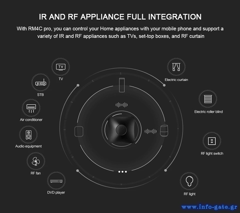 -υποστήριξη των περισσότερων συσκευών IR/RF όπως τηλεόραση, κλιματισμός, DVD κ.λπ.