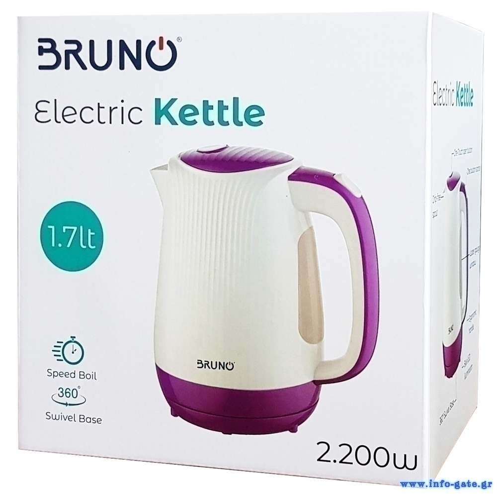 BRUNO ηλεκτρικός βραστήρας BRN-0001, 2200w, 1.7lt, βάση 360°, LED