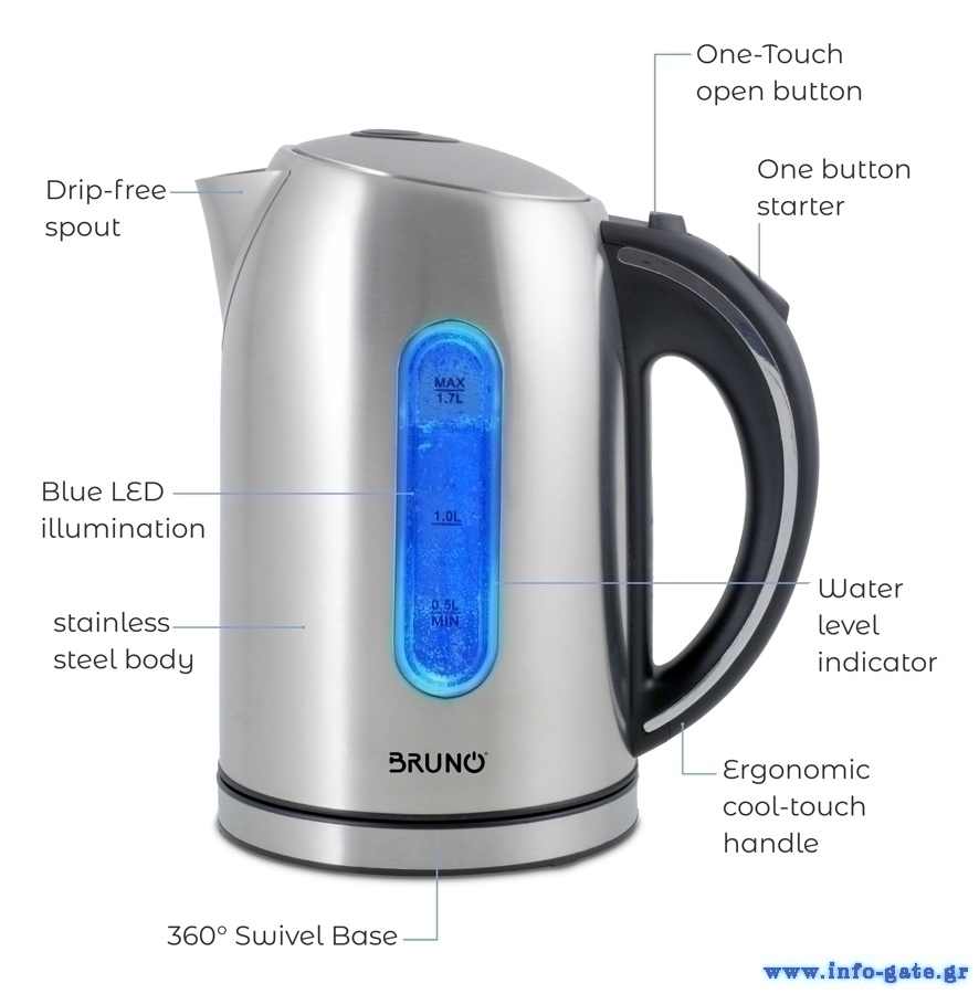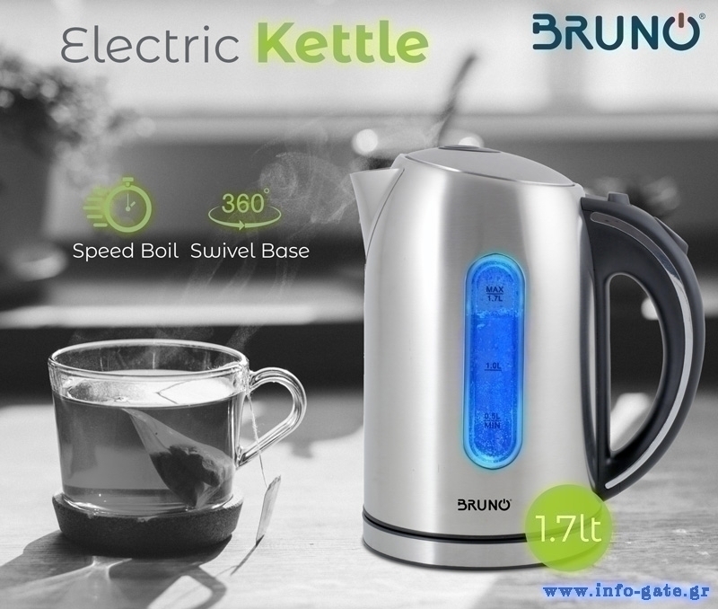 BRUNO ηλεκτρικός βραστήρας BRN-0028, 2200W, 1.7lt, βάση 360°, LED