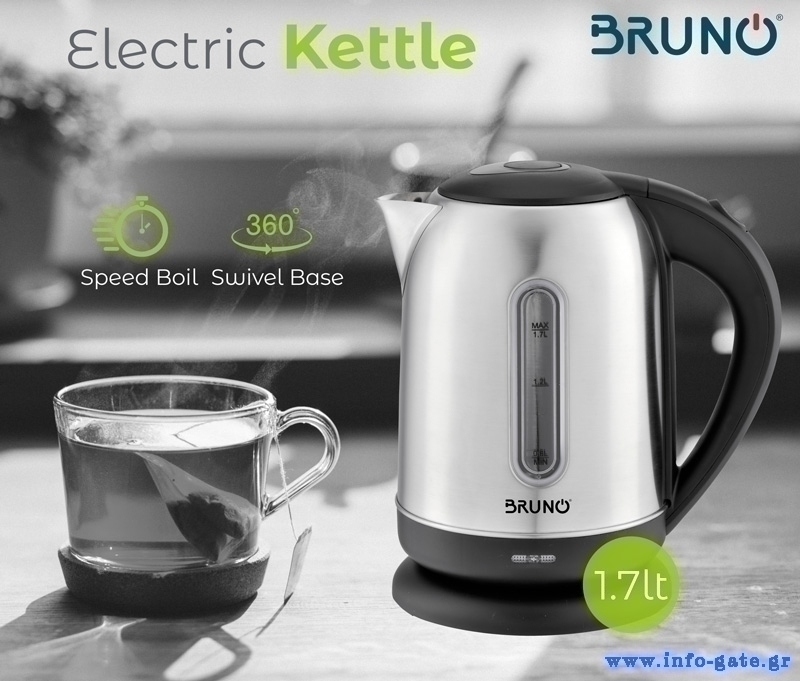BRUNO ηλεκτρικός βραστήρας BRN-0029, 2200W, 1.7lt, βάση 360°