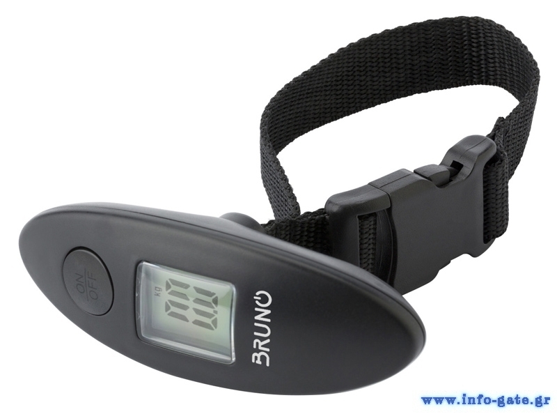 Ηλεκτρονική ζυγαριά από την Bruno, ιδανική για το ζύγισμα αποσκευών με φορτίο έως 40kg. Διαθέτει μεγάλη ευανάγνωστη οθόνη LCD, ενδείξεις για χαμηλή μπαταρία και υπερφόρτωση, αλλά και λειτουργία απόβαρου.