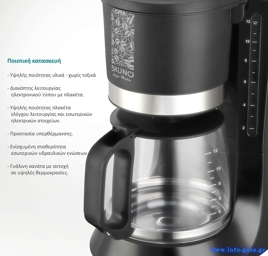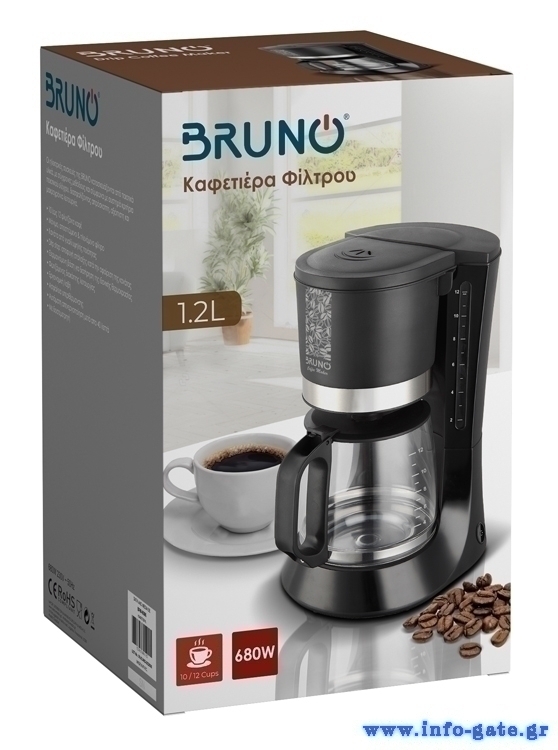 BRUNO καφετιέρα φίλτρου BRN-0086, 680W, έως 12 φλυτζάνια, 1.2L, μαύρη