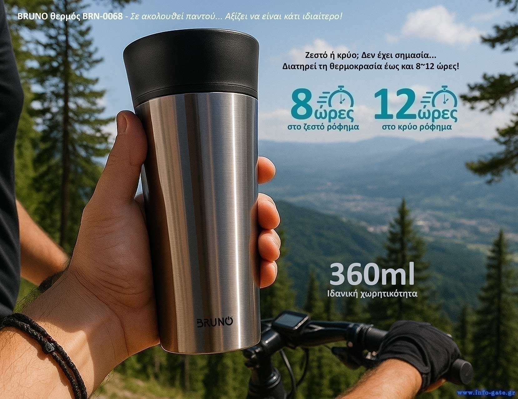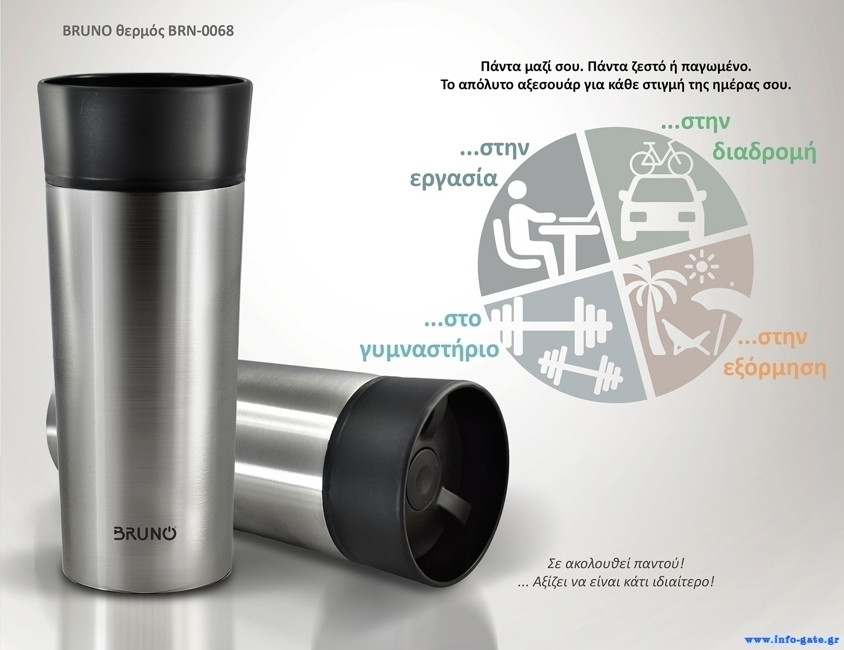 BRUNO θερμός BRN-0068, εργονομικό καπάκι, anti-slip, 360ml, ασημί