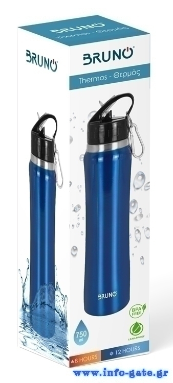 BRUNO θερμός BRN-0070, με καλαμάκι & γάντζο, anti-slip, 750ml, μπλε