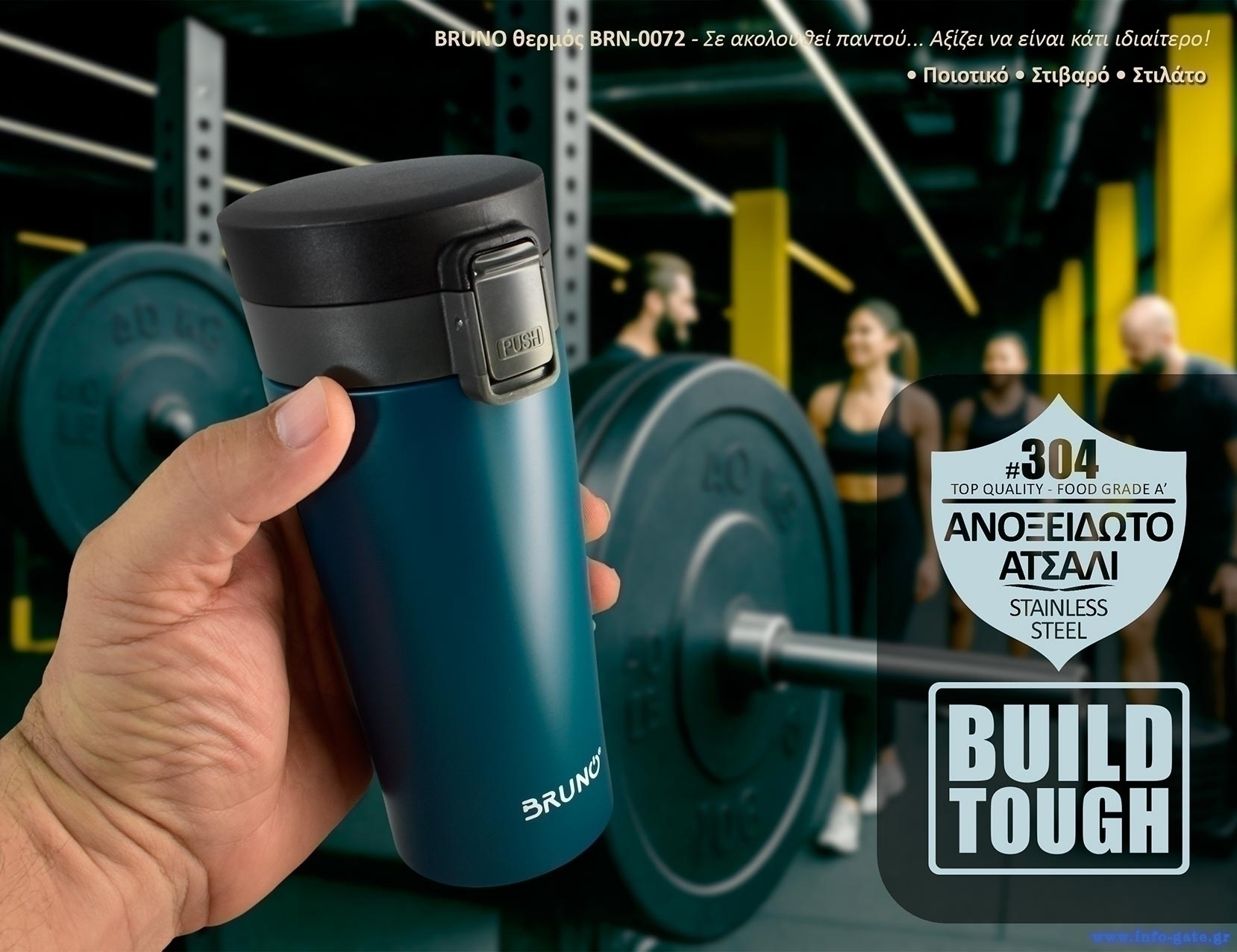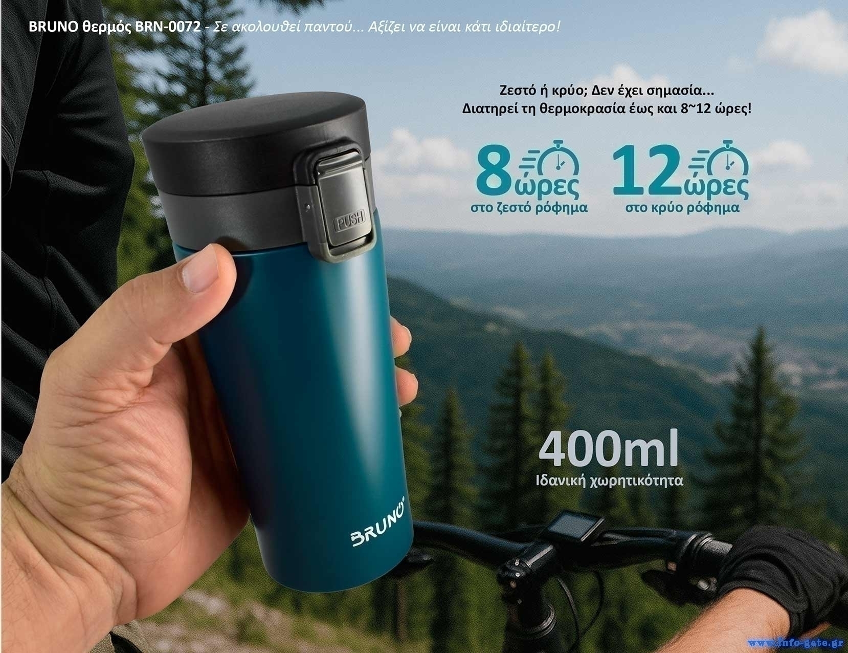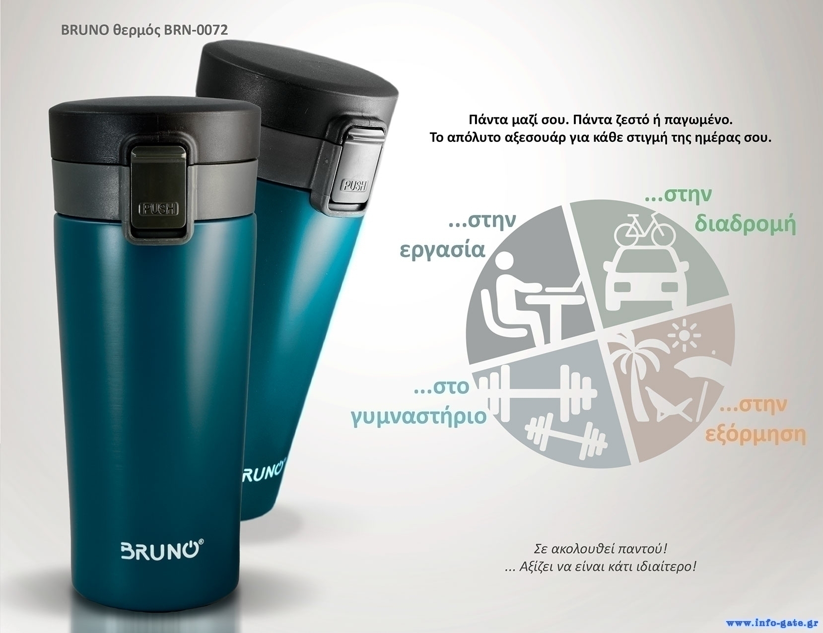 Θερμός της Bruno, κατασκευασμένος από υψηλής ποιότητας υλικά, απαλλαγμένος από BPA και με προσεγμένη, εργονομική σχεδίαση.