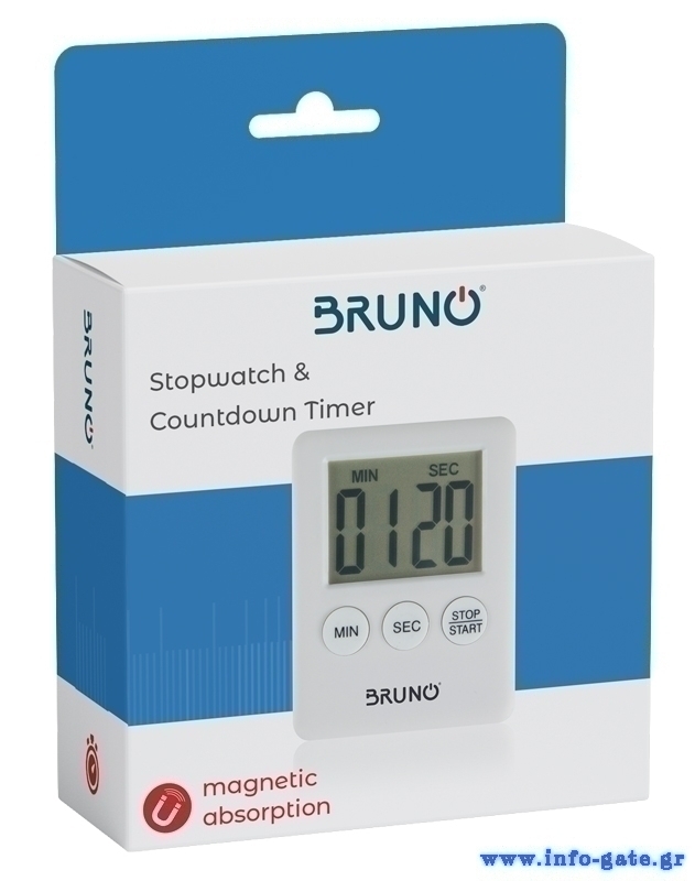 BRUNO χρονόμετρο & αντίστροφη μέτρηση BRN-0063, LCD, με μαγνήτη, λευκό