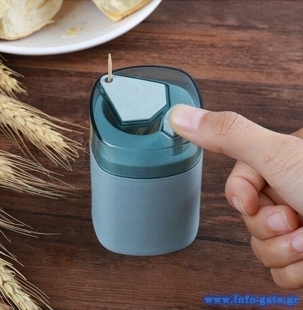 Κομψός διανεμητής οδοντογλυφίδας, κατασκευασμένος από ανθεκτικό υλικό. Πιέζοντας με το δάχτυλο σας το κουμπί στο καπάκι, ο διανεμητή αποδεσμεύει αυτόματα την οδοντογλυφίδα.