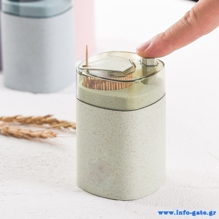 Κομψός διανεμητής οδοντογλυφίδας, κατασκευασμένος από ανθεκτικό υλικό. Πιέζοντας με το δάχτυλο σας το κουμπί στο καπάκι, ο διανεμητή αποδεσμεύει αυτόματα την οδοντογλυφίδα.