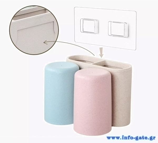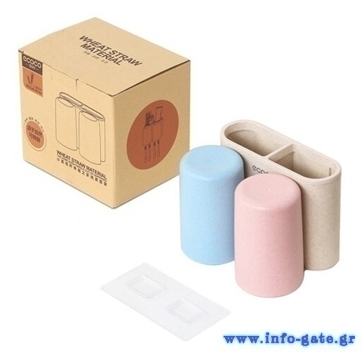 Βάση οδοντόβουρτσας με 2 ποτήρια της Ecoco και κομψή εμφάνιση, κατασκευασμένη από Eco-friendly υλικά. Τοποθετείται εύκολα στον τοίχο με αυτοκόλλητα τα οποία αποσπώνται από την βάση, διευκολύνοντας τον καθαρισμό της. Διαθέτει 2 ποτήρια και 2 θήκες όπου μπορούν να τοποθετηθούν οδοντόβουρτσες, οδοντόκρεμες ή αλλά αντικείμενα υγιεινής.