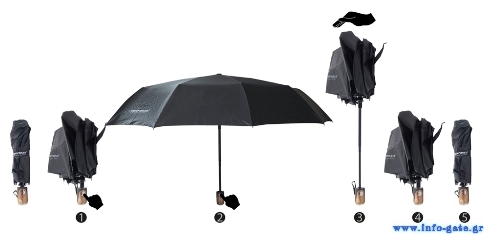 Στιβαρή και πρακτική ομπρέλα της Esperanza, με αυτόματο άνοιγμα και κλείσιμο με το πάτημα ενός κουμπιού.