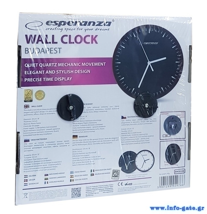Το ρολόϊ τοίχου Esperanza BUDAPEST EHC010W δεν χρησιμεύει μόνο στο να δείχνει την ώρα.