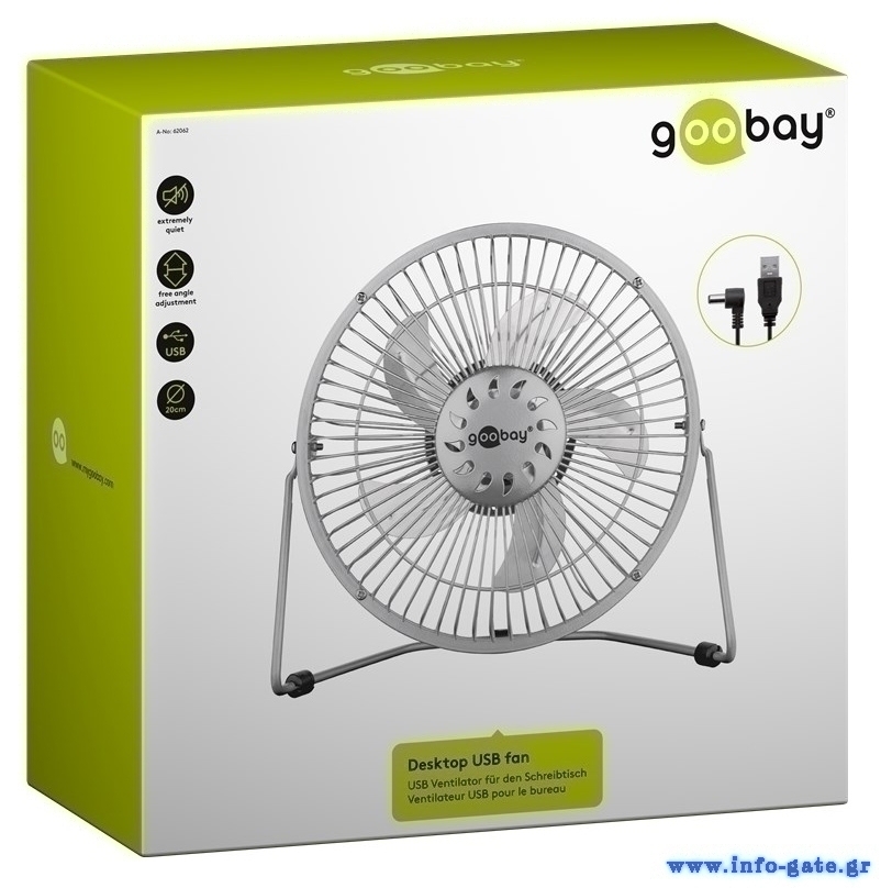 GOOBAY επιτραπέζιος ανεμιστήρας 62062, 8", USB, ασημί