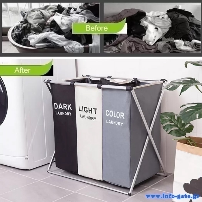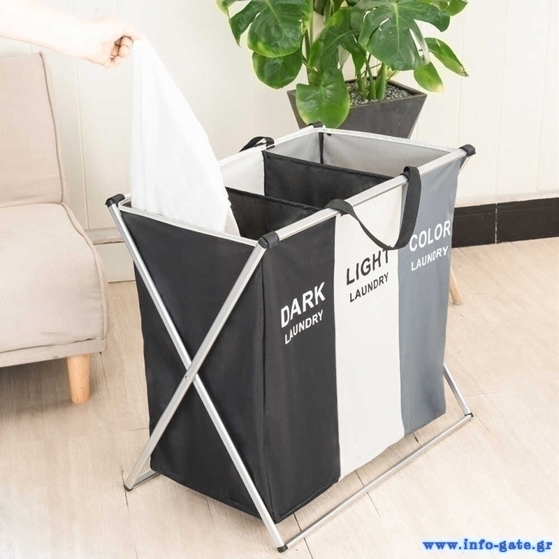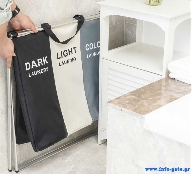 Καλάθι απλύτων με 3 σάκους και σχεδιασμό που χρησιμεύει ως ταξινομητής για λευκά, σκούρα ή χρωματιστά ρούχα και καθιστά τη διαδικασία του πλυσίματος πολύ ευκολότερη.
