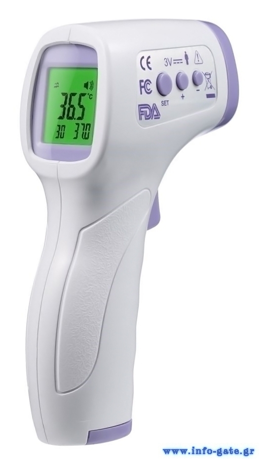 Το υπέρυθρο θερμόμετρο μετρά τη θερμοκρασία του σώματος των παιδιών και των ενηλίκων εύκολα και γρήγορα με ακρίβεια και χωρίς επαφή, γεγονός που το καθιστά 100% υγιεινό. Τοποθετήστε το θερμόμετρο στο μέτωπο ή το αυτί και μετά από λίγο μπορείτε να διαβάσετε το αποτέλεσμα μέτρησης. Διαθέτει λειτουργία αυτόματης απενεργοποίησης για εξοικονόμηση μπαταρίας μετά απο 18 δευτερόλεπτα.
