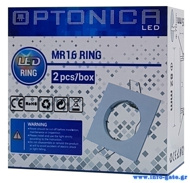 OPTONICA μεταλλικό πλαίσιο spot για MR16 5074, χωνευτό, 82x82x25mm, 2τμχ