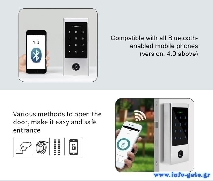 Το H1-BT είναι ένα αδιάβροχο πληκτρολόγιο αφής με δυνατότητα Bluetooth και RFID πρόσβασης. Μπορεί να συνδεθεί με iOS ή Android smartphone μέσω της εφαρμογής TuyaSmart και υποστηρίζει 100 χρήστες (συμπεριλαμβανομένων 255 χρηστών κάρτας/PIN).