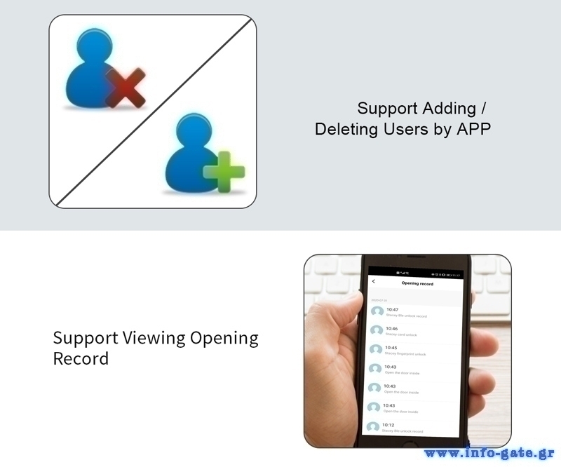 User Capacity: Hardware User: 1000, APP User: 100 (including 255 card/ PIN users)