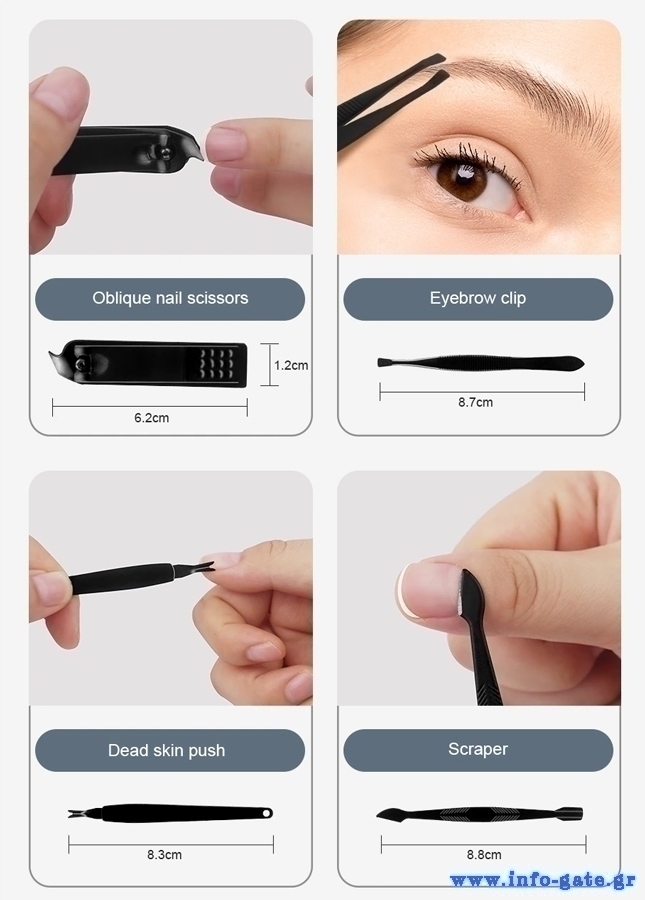 Εξαιρετικό σετ που αποτελείται από 20 διαφορετικά εργαλεία, ιδανικά για την περιποίηση των νυχιών και του προσώπου.
