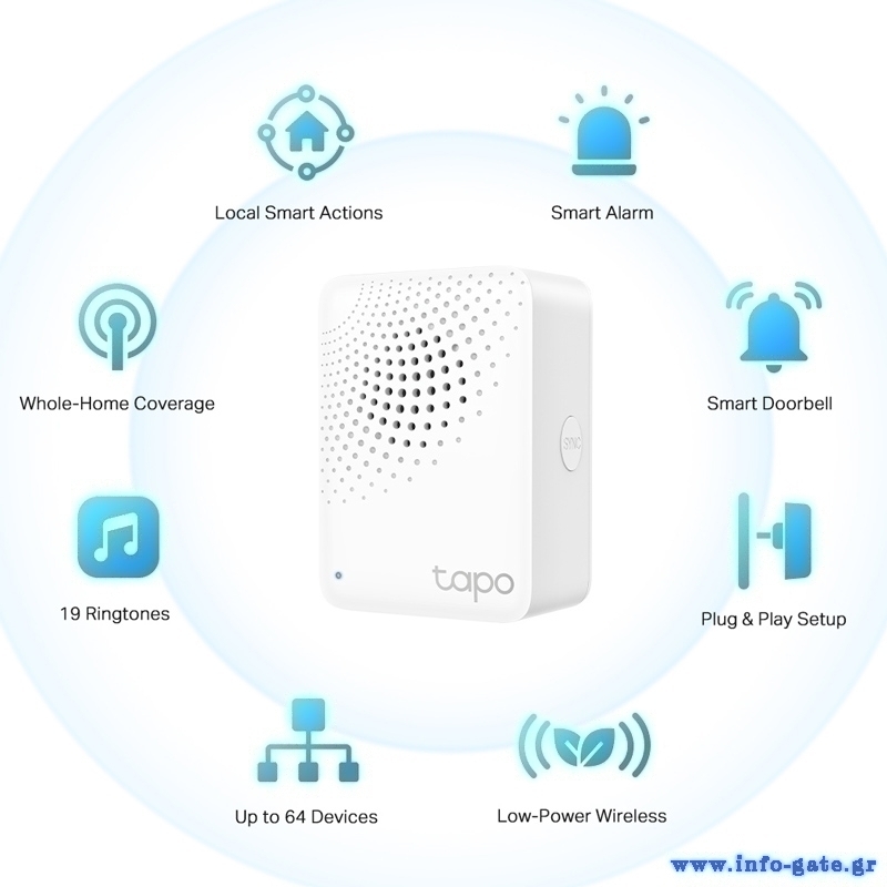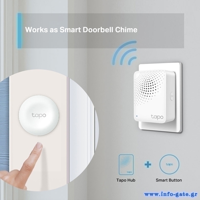-Έξυπνο Κουδούνι Πόρτας: Συνδυάστε το με το Έξυπνο Κουμπί Tapo για να δημιουργήσετε το έξυπνο σύστημα κουδουνιού πόρτας, συν 19 ήχους για να διαλέξετε.