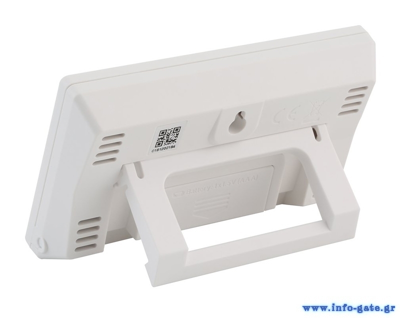 Επιπλέον, διαθέτει ένδειξη ημερομηνίας και ώρας (12/24) και λειτουργία ξυπνητήρι. Η τοποθέτηση του μπορεί να γίνει επιτραπέζια ή σε τοίχο.