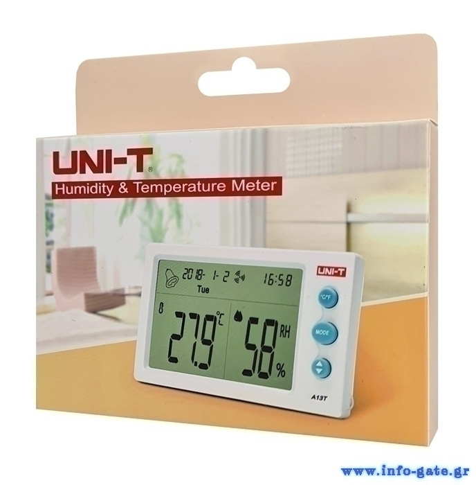UNI-T θερμόμετρο & υγρασιόμετρο A13T, λειτουργία ρολόι & ξυπνητήρι