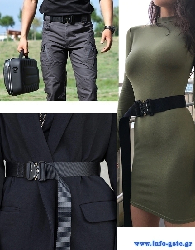 Ζώνη στρατιωτικού τύπου, εξαιρετικής αντοχής με μεταλλική πόρπη ταχείας απασφάλισης.