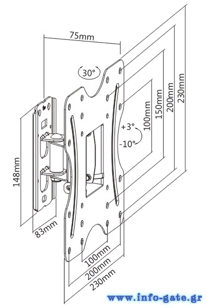 Dimensions: 75x230x230mm (3"x9.1"x9.1")