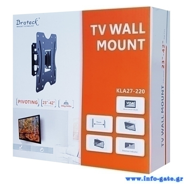 BRATECK επιτοίχια βάση τηλεόρασης KLA27-220, 23-42", έως 30kg, full motion