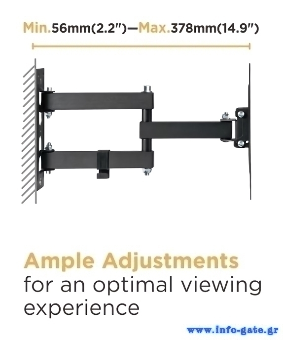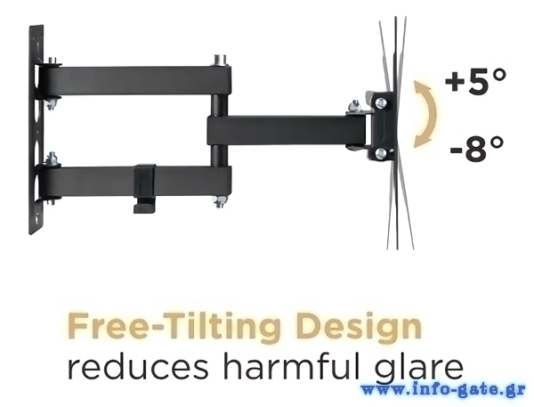 POWERTECH επιτοίχια βάση τηλεόρασης PT-1129, 23-43", έως 30kg, full motion