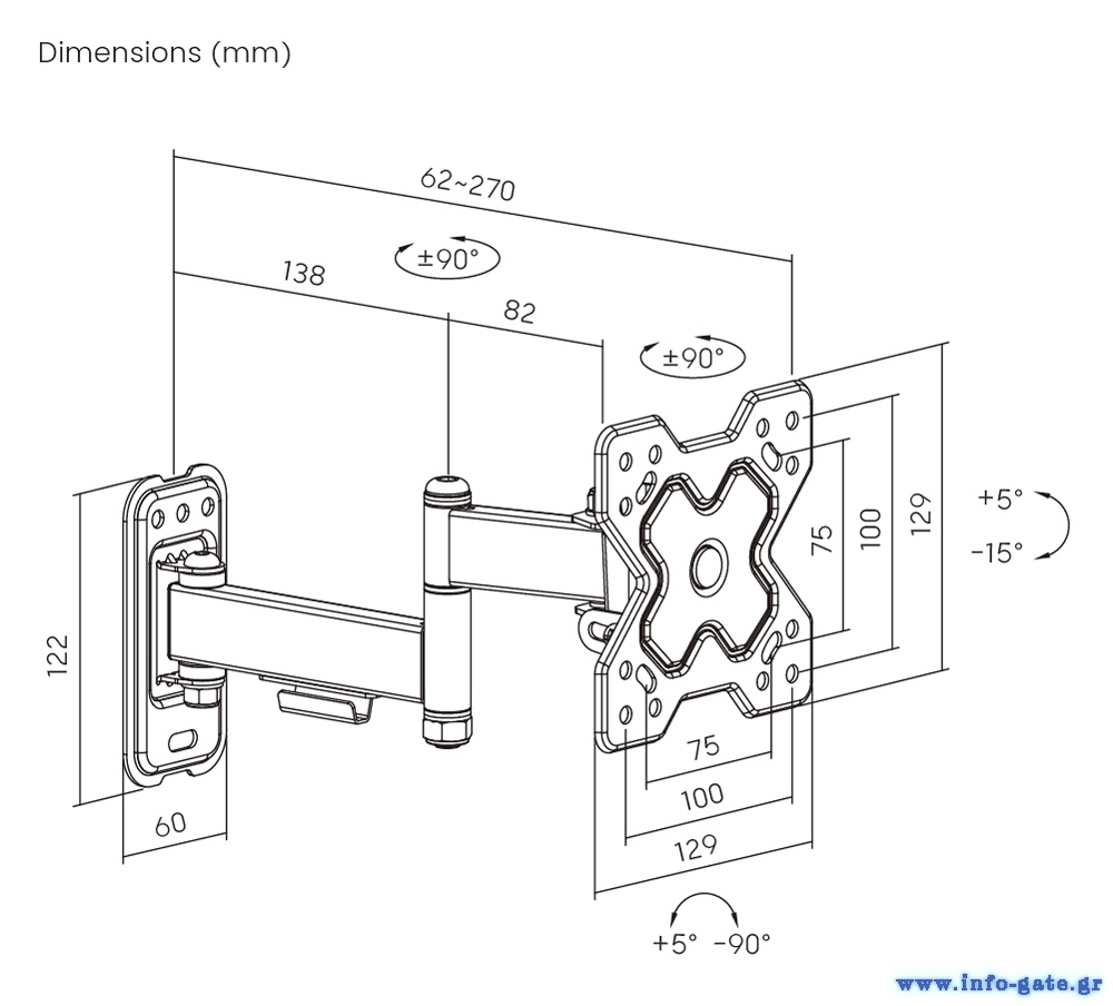 -εμβέλεια περιστροφής: +90° ~ -90°