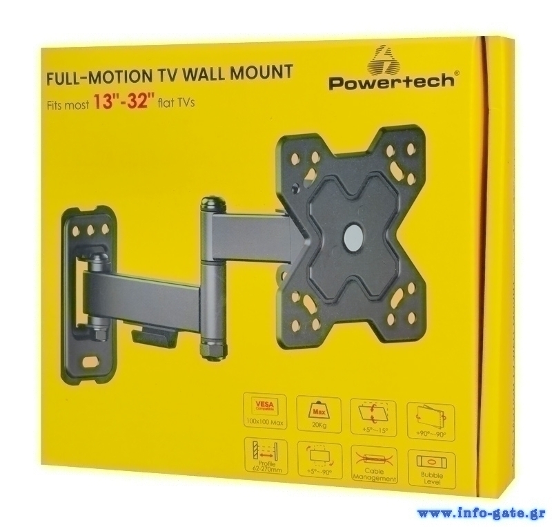 POWERTECH επιτοίχια βάση τηλεόρασης PT-1278, 13-32", έως 20kg, full motion
