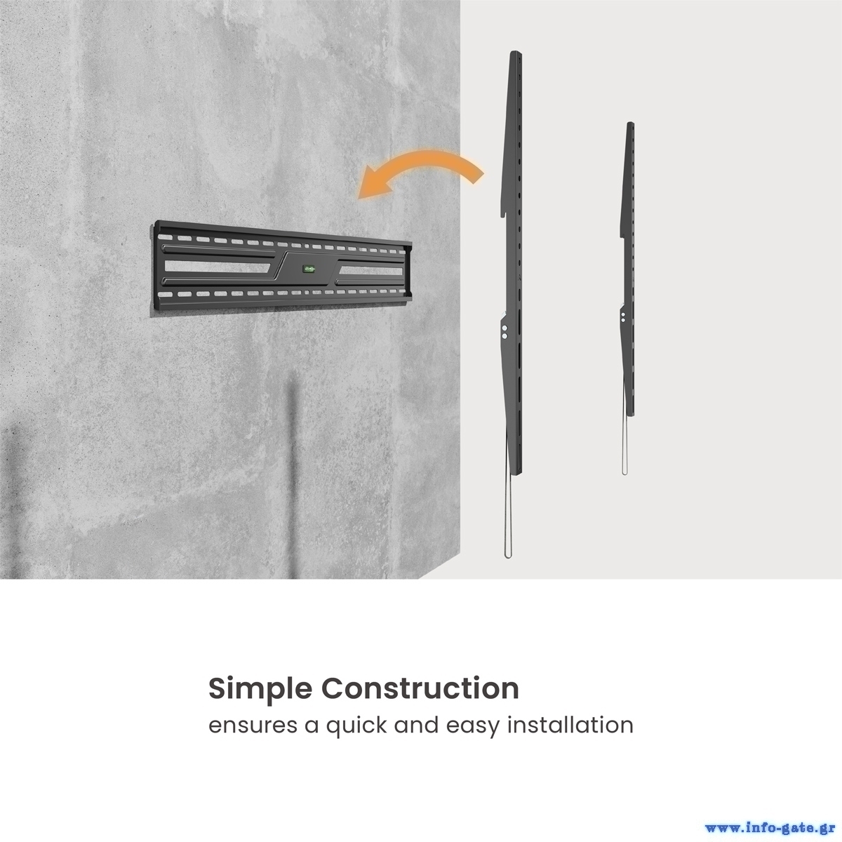 POWERTECH επιτοίχια βάση τηλεόρασης PT-1369, 43-100", έως 75kg, fixed