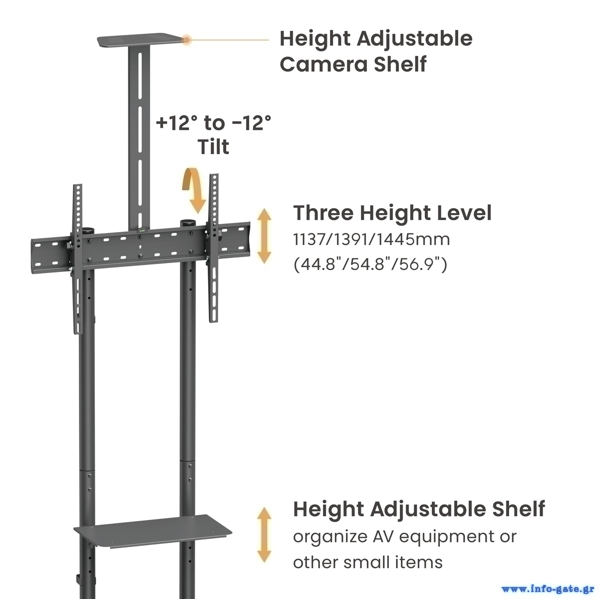 Με 1 ράφι για την τοποθέτηση αξεσουάρ ή άλλων περιφερειακών συσκευών και 1 ράφι για την τοποθέτηση κάμερας. Και τα 2 ράφια μπορούν προσαρμοστούν ως προς το ύψος.