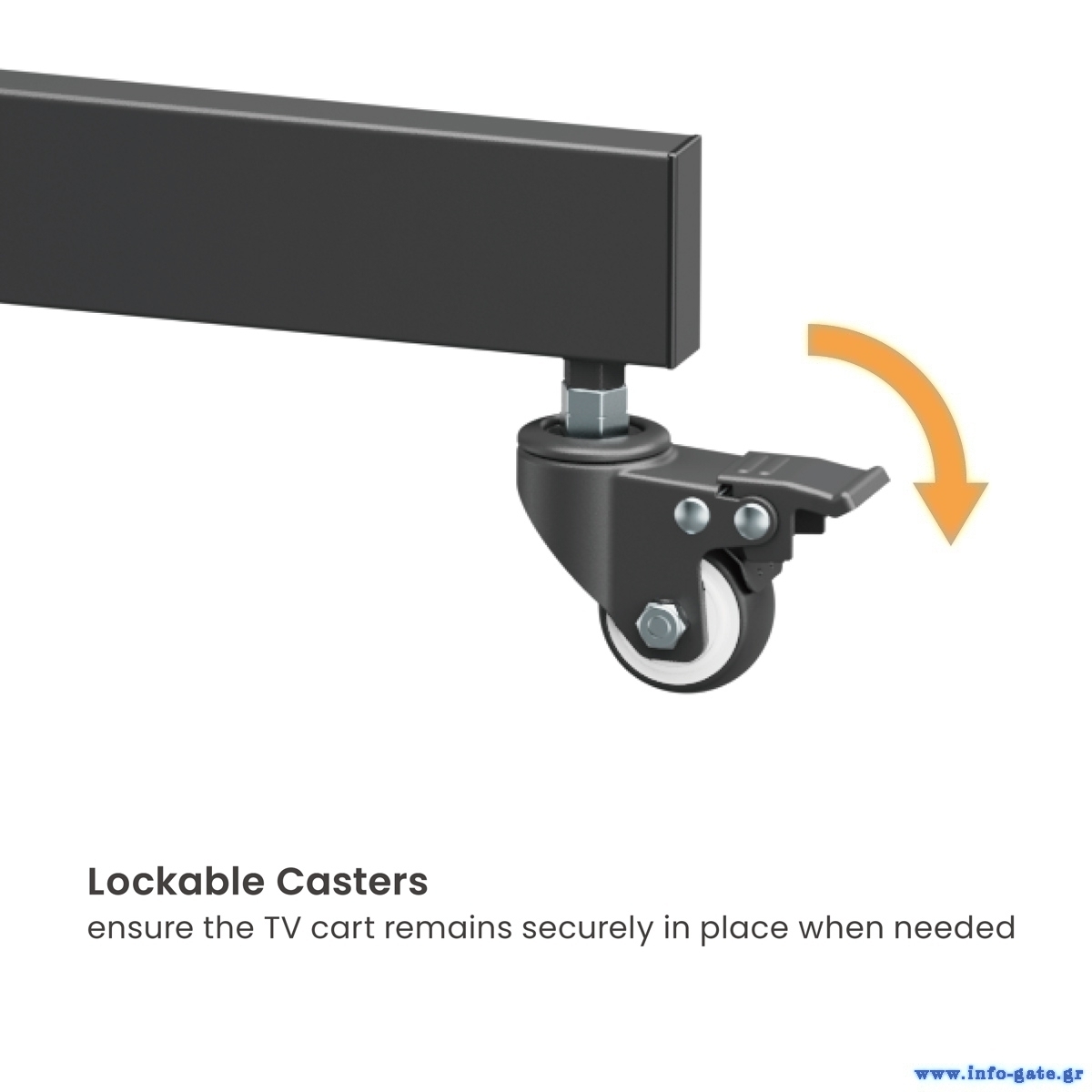 Ροδάκια για εύκολη μετακίνηση της τηλεόρασης, με μηχανισμό κλειδώματος που εξασφαλίζει τη σταθερότητα όταν απαιτείται.