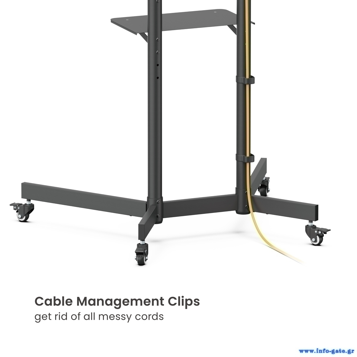 BRATECK βάση τηλεόρασης δαπέδου T1042T, 37-70", έως 45kg, με ράφια & ροδάκια
