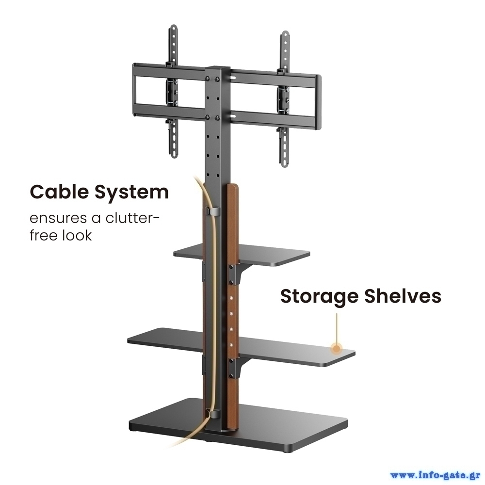 POWERTECH βάση τηλεόρασης δαπέδου PT-1422, 32-75", έως 40kg, με ράφια