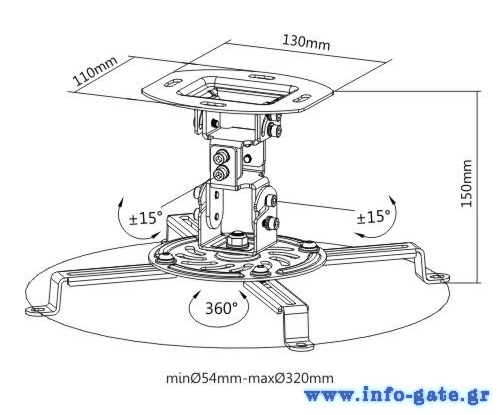 BRATECK Βάση για projectors PRB-18F, οροφής, 360° περιστροφή, έως 13.5kg