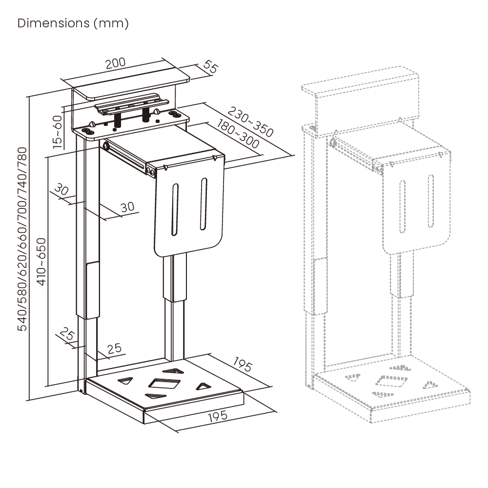 Αυτή η βάση γραφείου της Brateck τοποθετείται με σφικτήρα στην επιφάνεια του γραφείου, προσφέροντας ασφαλή και πρακτική στήριξη για τον υπολογιστή σας, εξοικονομώντας χώρο και διατηρώντας το PC μακριά από το πάτωμα.