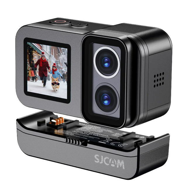 Action camera της SJCAM, ιδανική για απαιτητικές λήψεις σε κάθε περιβάλλον, με διπλό φακό και διπλή οθόνη για μεγαλύτερη ευελιξία.