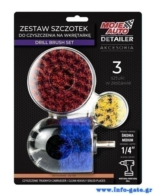 MOJE AUTO σετ βούρτσες καθαρισμού 19-628 για δράπανο, 3τμχ